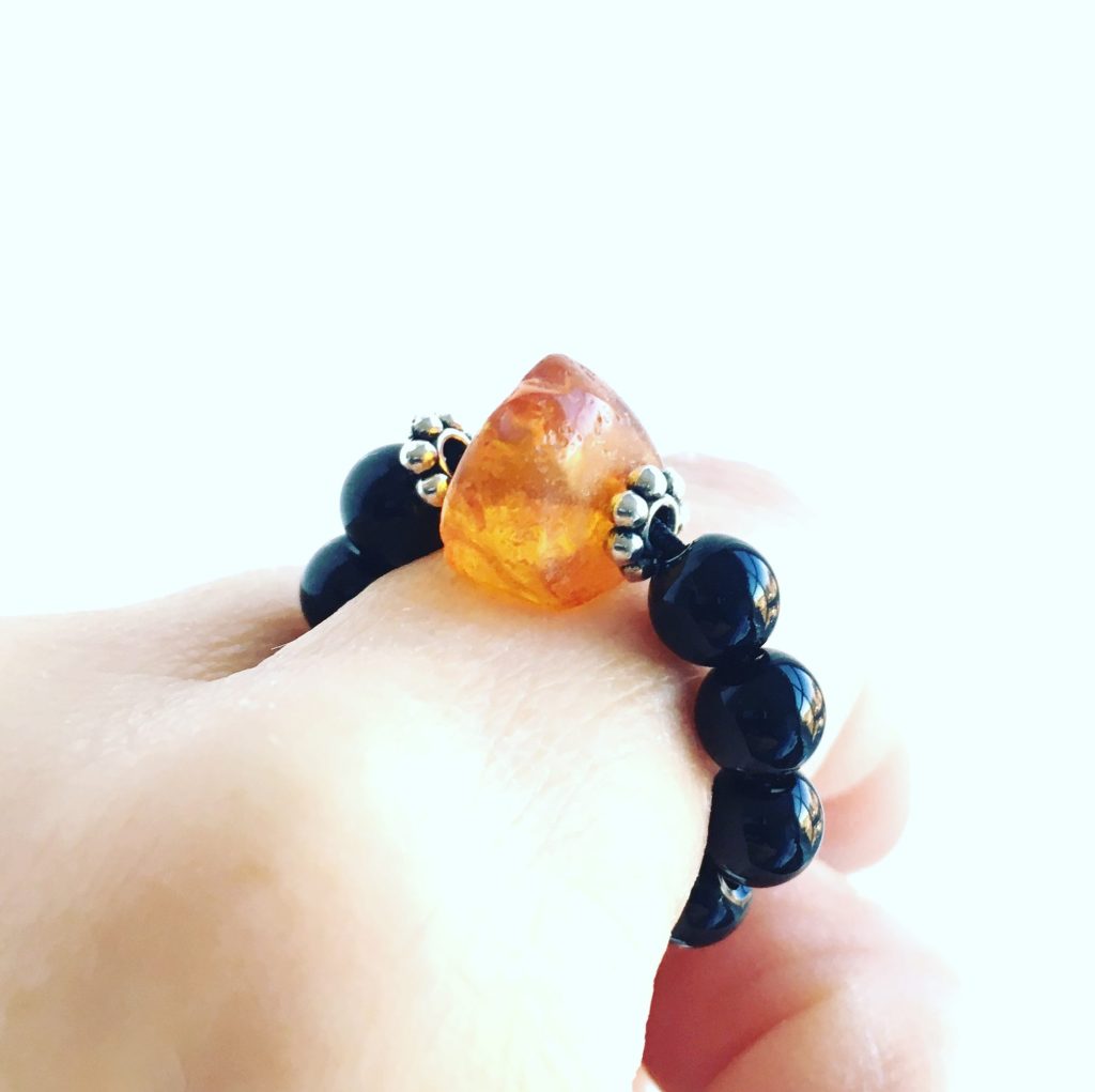 Reflexology / massage / acupressure rings can be used as soothing tools for hands and feet. Made with a variety of materials: Danish ethically hand-picked amber, gemstone beads, and eco-friendly handmade resin. Roll rings up and down fingers from a soothing and stress-relieving experience. Best used when at the dentist or doctors, on a flight, or during any other nerve wracking time.