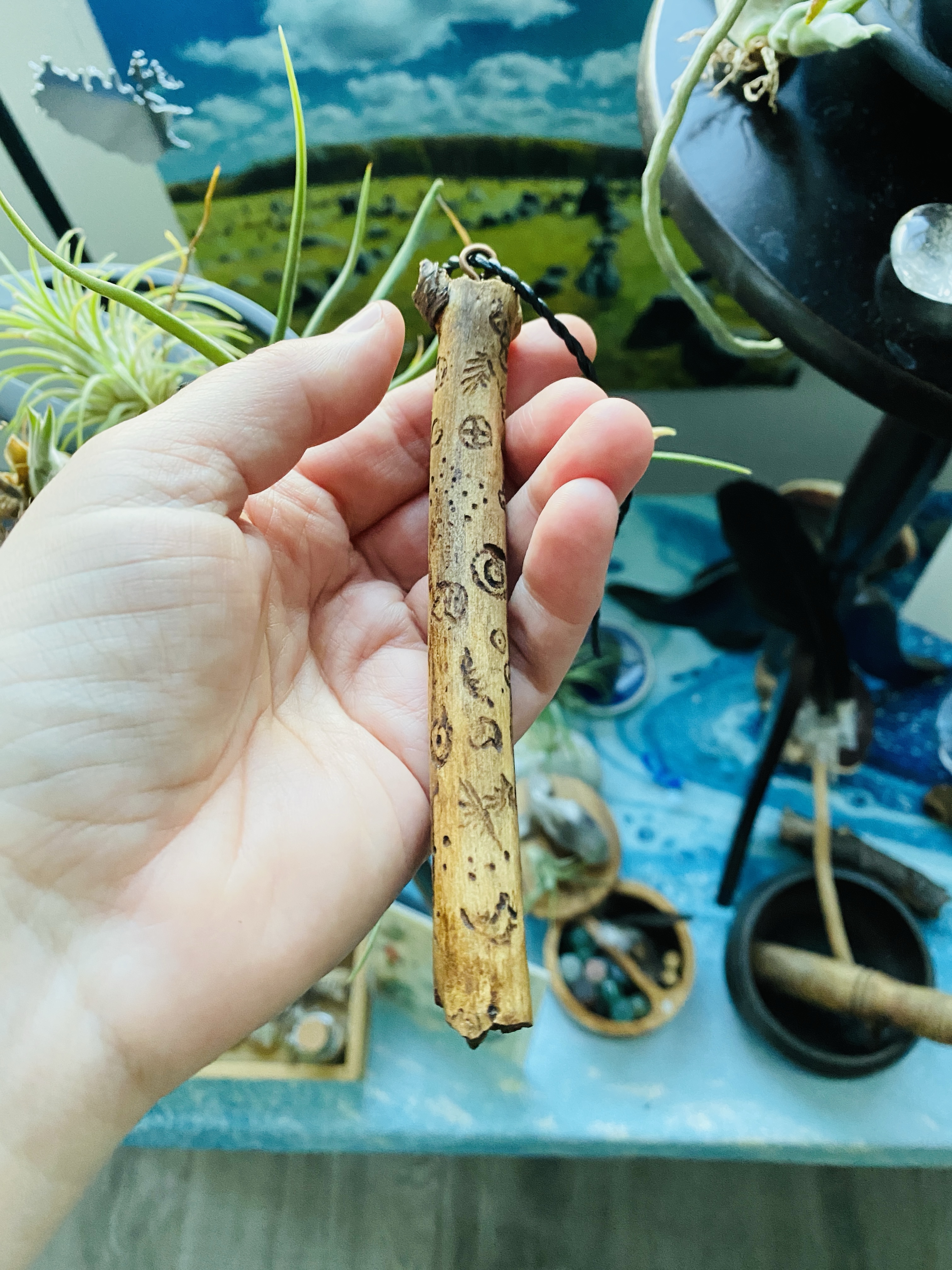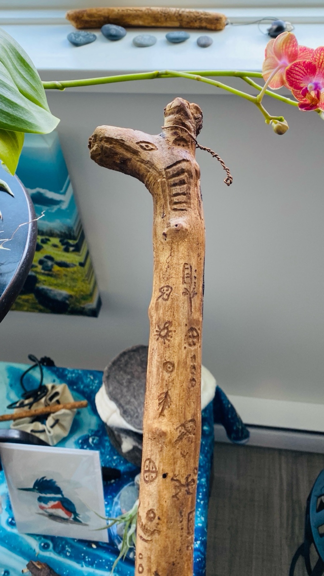 Inspired by ancient Scandinavian history with my own twist. Wood sticks engraved with pictures and Nordic petroglyphs for meditation or home decor use. Hand engraved followed by a gentle stain and non-toxic varnish, or kept natural adorned with handmade charms.