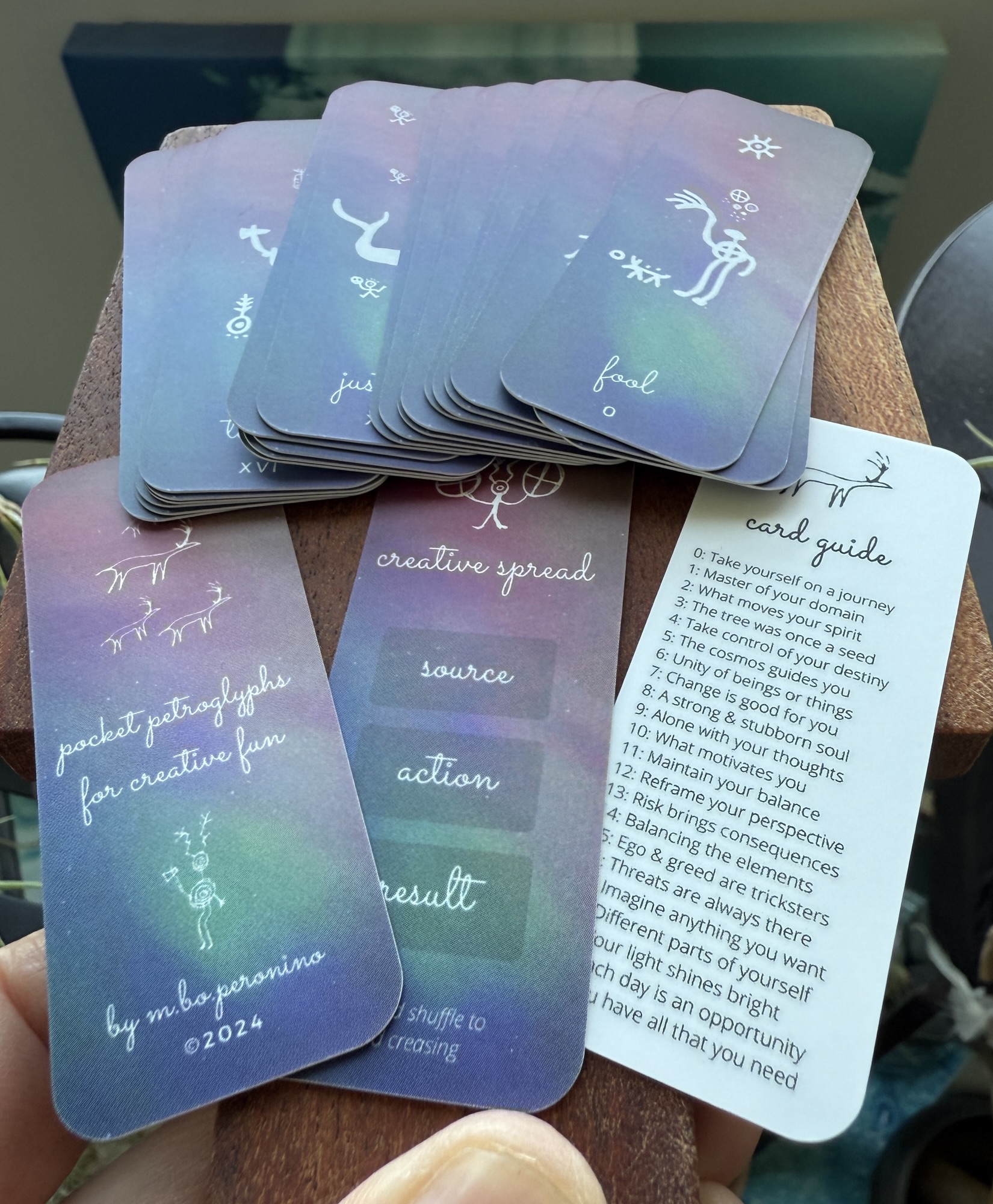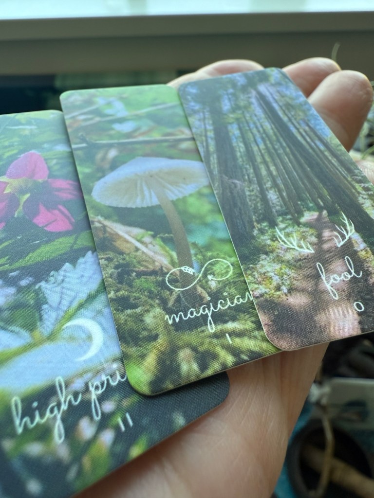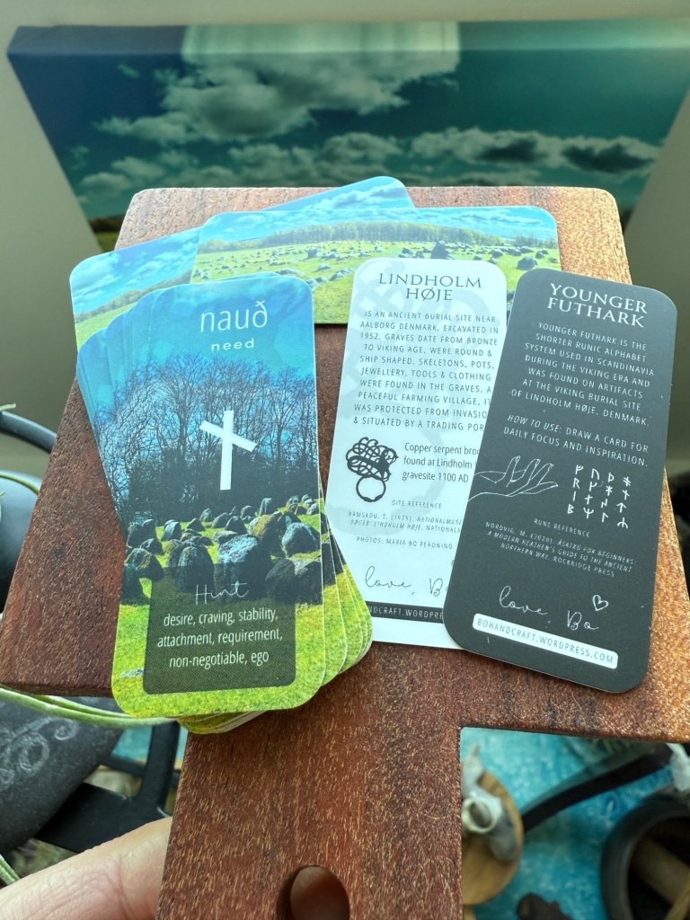 I am a designer and love making cards be it big or small. I enjoy making oracle, tarot and story cards that are unique. Images are built from my own photos and are combined with my drawings often drawing on nature and nordic themes, or a blend of both.